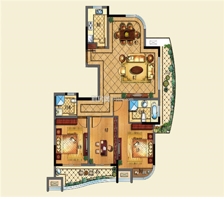优点:客厅宽敞,连接的北向大露台为可变空间,满足个性化的需要。主卧有宽阔的景观阳台,次卧有观景飘窗,保证采光的同时还可随时欣赏小区美景。