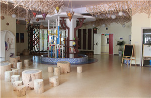 营销中心门口的儿童游乐设施垫着软垫,保护孩子以免受伤。