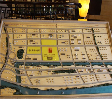 营销中心大堂正中间摆着小区沙盘模型。